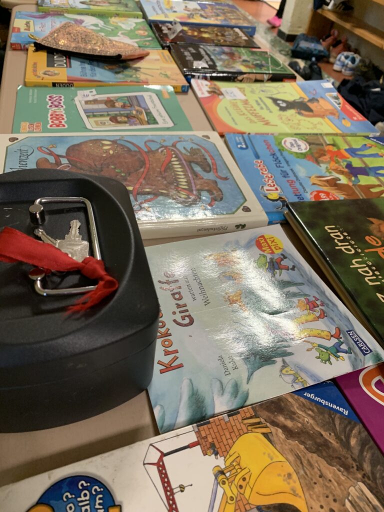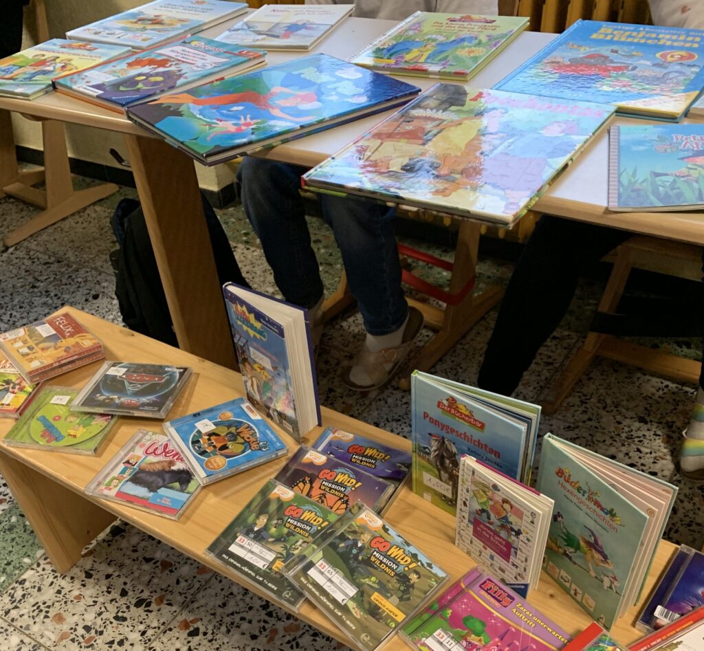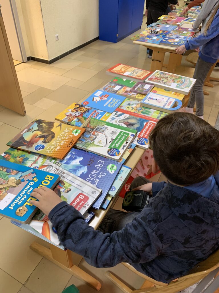 Ein Höhepunkt war wie jedes Jahr der große Bücherflohmarkt. Hier organisierten die Dritt- und Viertklässler den Verkauf und boten eine bunte Auswahl an Lesestoff an: Sachbücher, Märchen, Comics und vieles mehr. Auch Hörbücher und kleine Spiele fanden begeisterte Abnehmer. So konnten alle Kinder an diesem Tag viele „bunte Wörter“ sammeln – ganz im Sinne der berühmten Maus Frederick.
